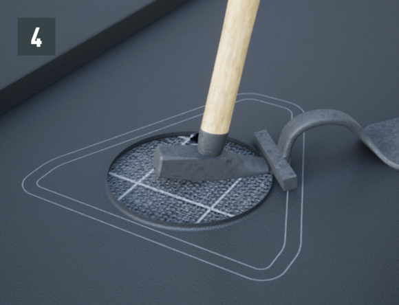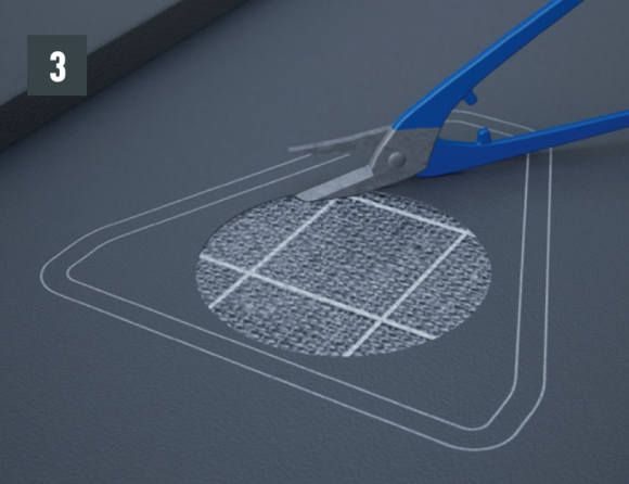 Bebording en scheidingslaag moeten worden uitgesneden volgens de ventilatiediameter (diameter ~10 cm). De dakbedekking moet rondom de randen van de uitsparingen worden voorzien van een opstand van 1 cm hoog.