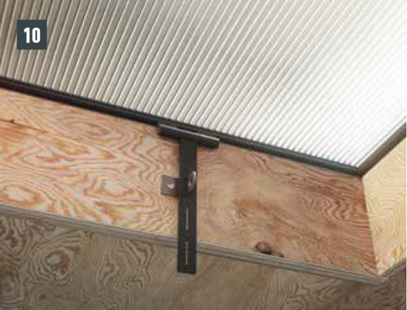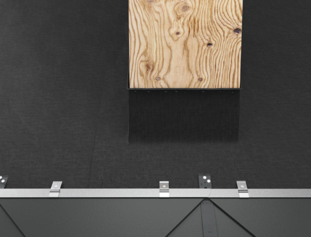Een steunplaat kan de basis vormen voor de montage van een sneeuwbeschermingssysteem, enkele treden, dakveiligheidshaken of andere accessoires, bijvoorbeeld als zich een fels of golfkam in het gebied van de spanten bevindt. Bevestig het betreffende accessoire niet in een fels of op de golfkam van een PREFA-dakbedekking.