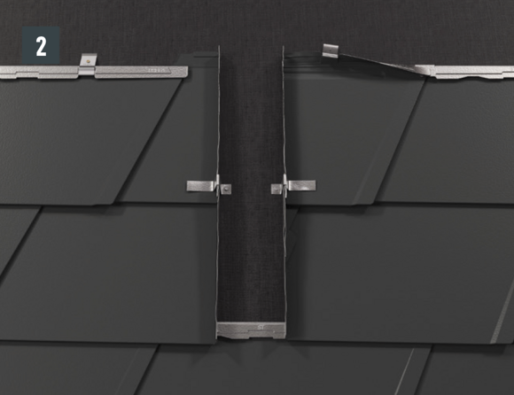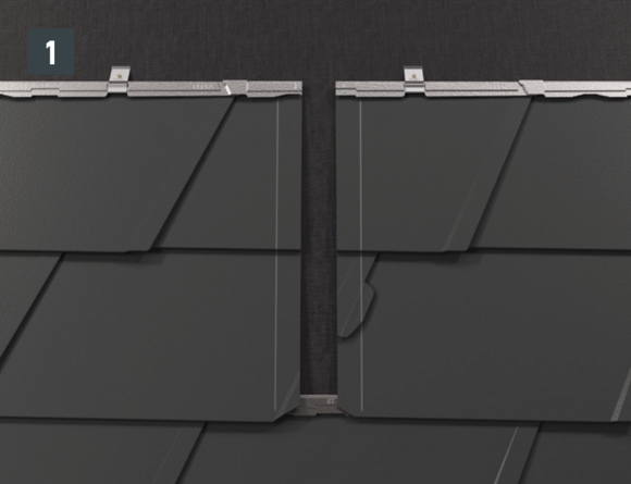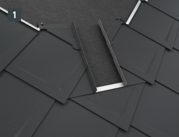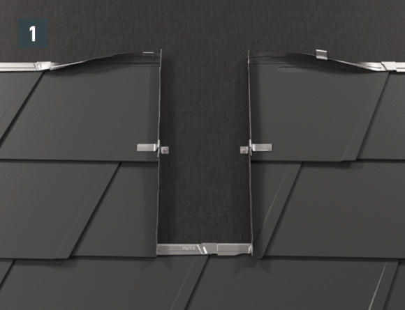 Wanneer de eindpannen voor de daklosanges 29 × 29 worden gelegd, dient de meegeleverde afdekstrip boven de daklosangeklang 29× 29 te worden gemonteerd (afbeelding 1 + 2).