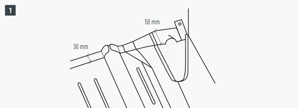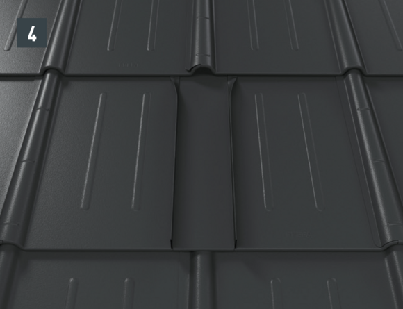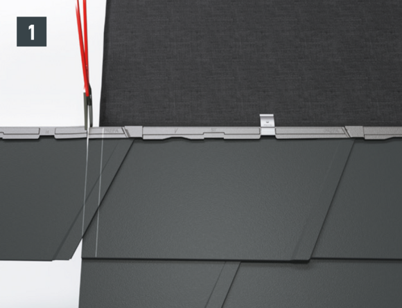 Na montage van de dakpan moet de bovenste dakpanomslag zo worden uitgelijnd dat het mogelijk is om een recht voorste deel in te hangen (afbeelding 1-4).
