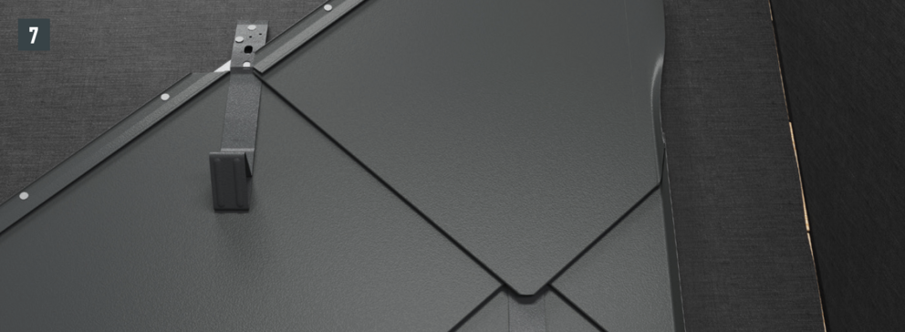 Nadat de dakpannen tot de gewenste positie van de steunplaat zijn gemonteerd, moet de bovenste dakpanomslag zo worden uitgelijnd, dat het mogelijk is om de steunplaat erin te hangen.