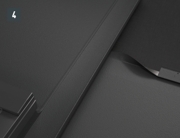 LET OP: Als de dakhelling minder dan 20° is, moeten de dwarsnaden en overlappende voegen van de omlijsting extra worden afgedicht.