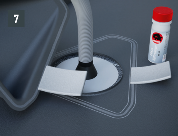 De schuine vouw aan de bovenzijde moet in het gebied van de opstaande rand conform afbeelding 6 worden ingekeept.