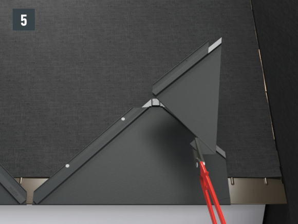 Voor elke opstaande rand aan de zijkant van de daklosange van 29 × 29 en 44 × 44 moeten de schuin naar beneden lopende vouwen aan de onderzijde worden uitgesneden en omhoog gebogen (afbeelding 1,2,3 + 4).