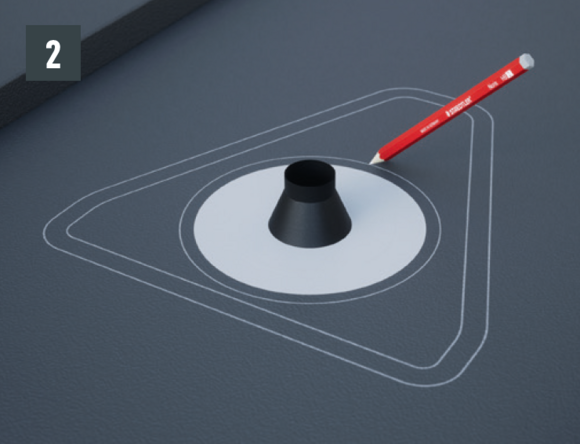 Als de positie van de doorvoer is aangegeven en op grond daarvan de doorvoerplaat niet kan worden gebruikt, kunnen buisdoorvoeren worden gerealiseerd met behulp van een doorvoerplaat om te felzen. Doorvoerplaten zijn geschikt voor buisdoorvoeren van Ø 80–125 mm.