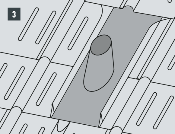 Voor de montage van de doorvoerplaat moeten bij daklosanges van 29 × 29 of 44 × 44 begin- en eindlosanges worden gelegd.