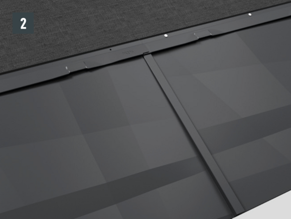 • Dakpaneel FX.12 afstellen en in de vouw schuiven (afbeelding 1 + 2) Sla met het handvat van de hamer licht tegen de onderkant van het paneel.