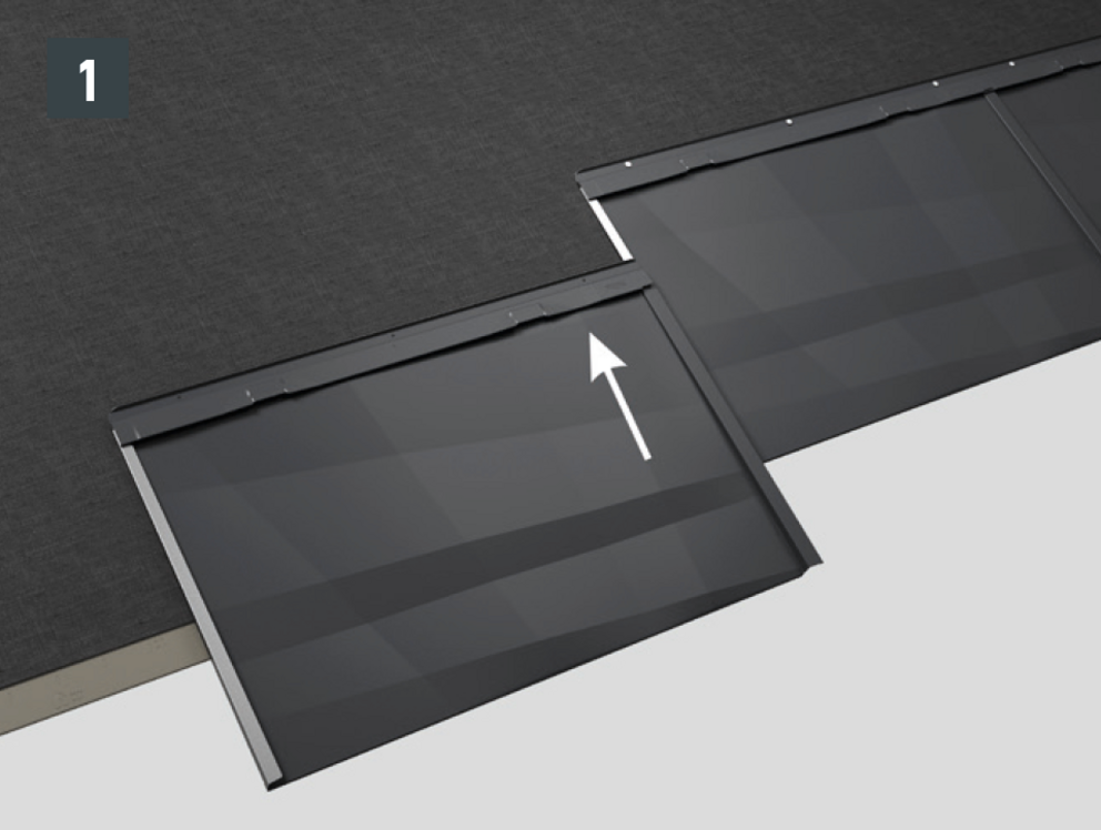 • De dakpanelen FX.12 worden van rechts naar links gelegd en dienen per rij (in horizontale rijen) te worden gelegd.