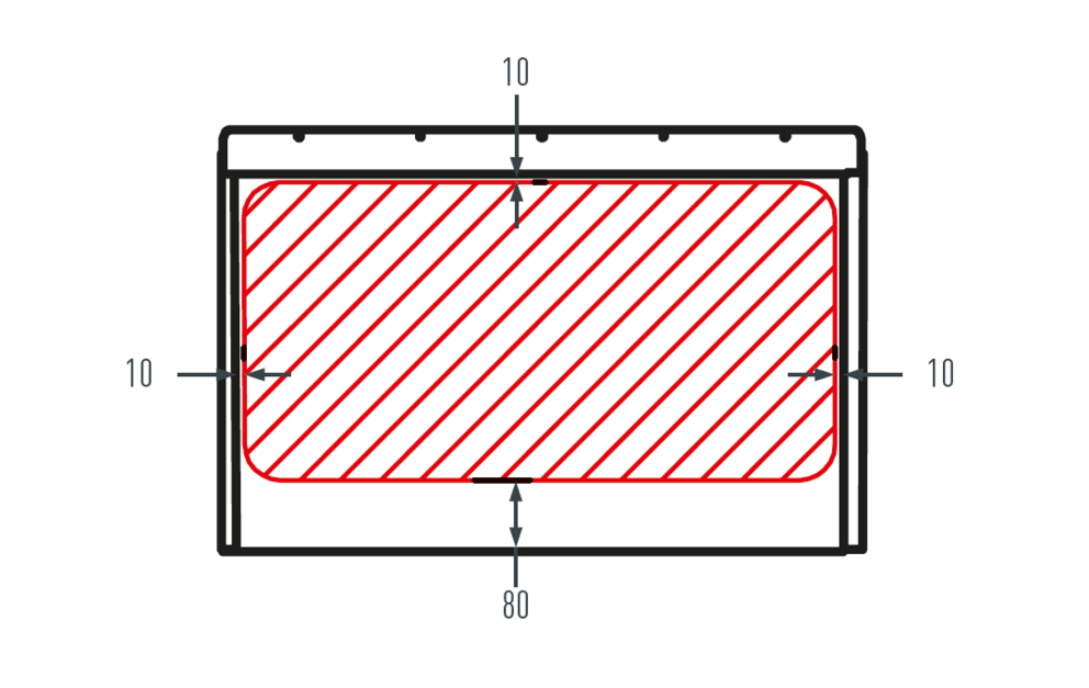 Let bij het monteren van dakaccessoires op het toegestane montagegebied op de dakpanelen FX.12. Onderstaande afbeelding toont het montagegebied voor accessoires op voetstukken. Voor andere accessoires kunnen afwijkende montagegebieden zijn gespecificeerd.