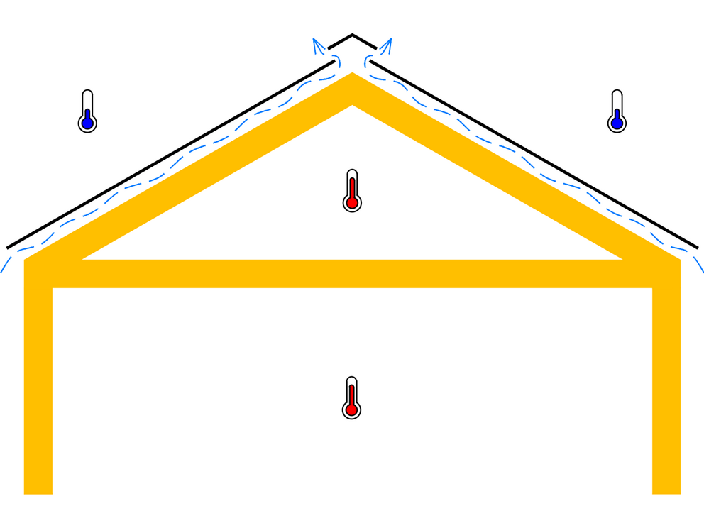 Geventileerde dakconstructies beschikken over een luchtlaag tussen de thermische isolatie en de dakbedekking. De ventilatieruimte zorgt voor de afvoer van warmte en vocht die door diffusie vanuit de binnenruimte in de dakconstructie terechtkomen. Dit heeft een positief effect op het binnenklimaat en vermindert het risico op condenswater en bouwschade.