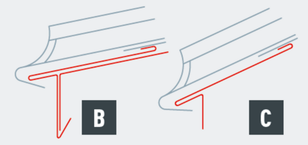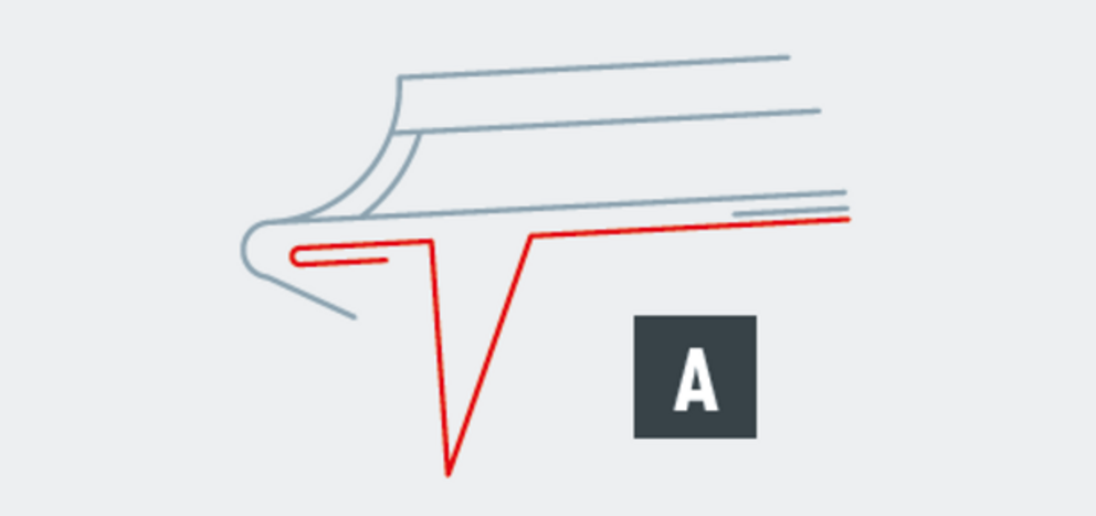 Startprofiel (dakrandstrip) min. 1,0 mm dik (bijv. afb. A). Startprofiel (dakrandprofiel) 0,7 mm dik met aanhakingsprofiel min. 0,8 mm dik (bijv. afb. B).