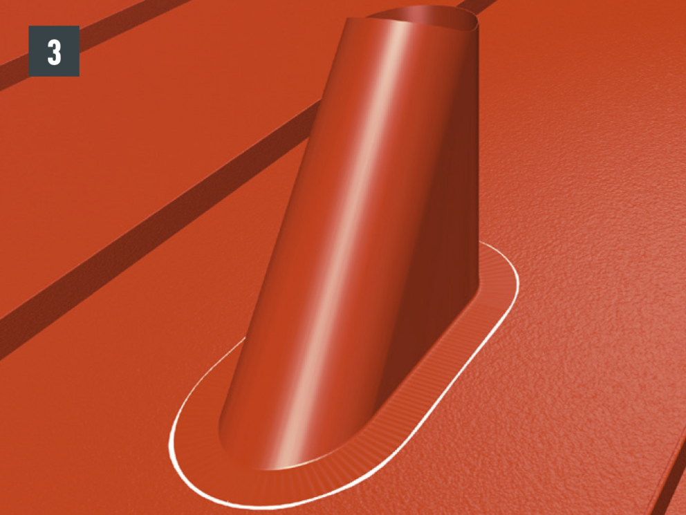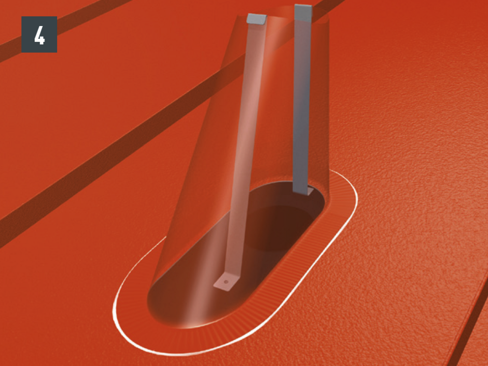 Deze moet voldoende over de bovenrand van de dakdoorvoer worden gebogen en op de bebording worden geschroefd (afbeelding 4).