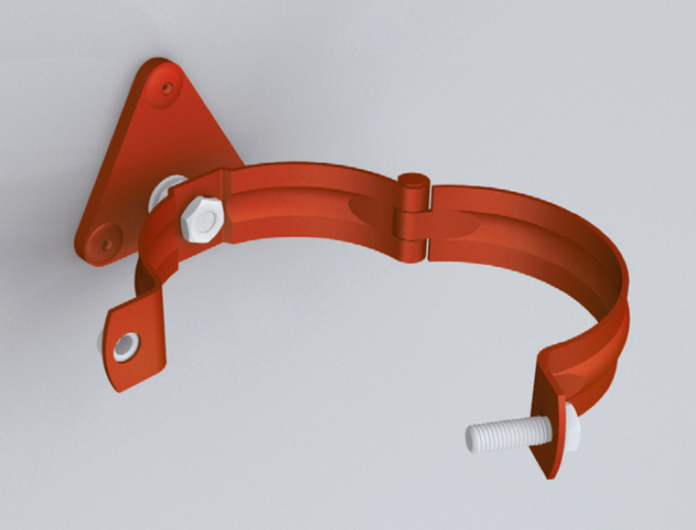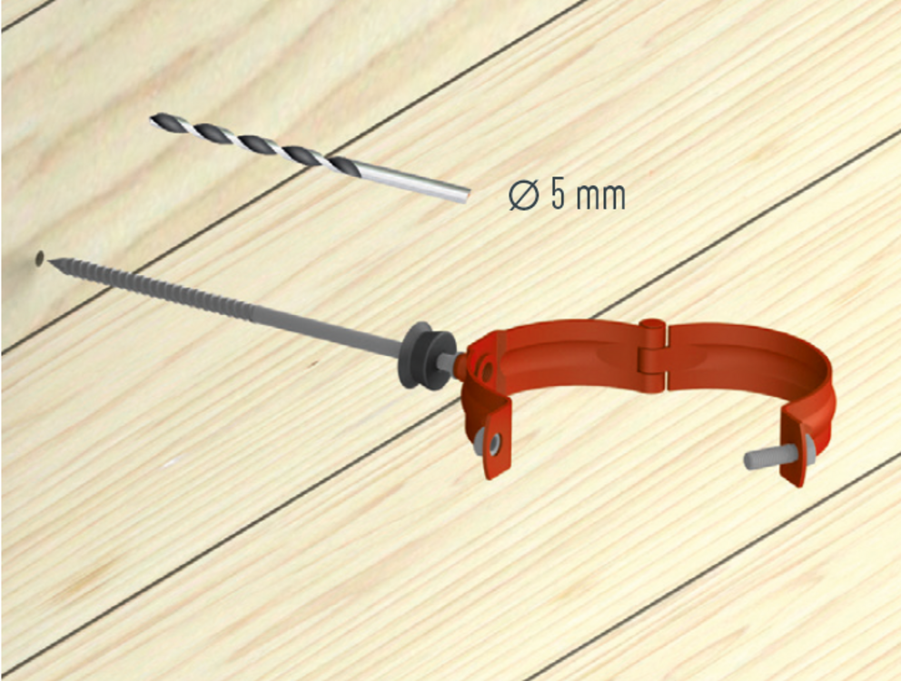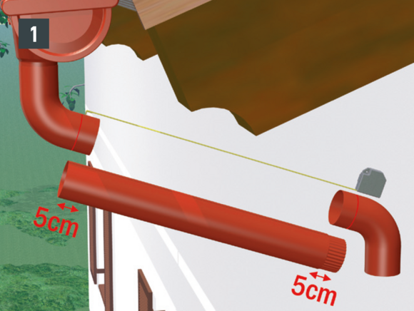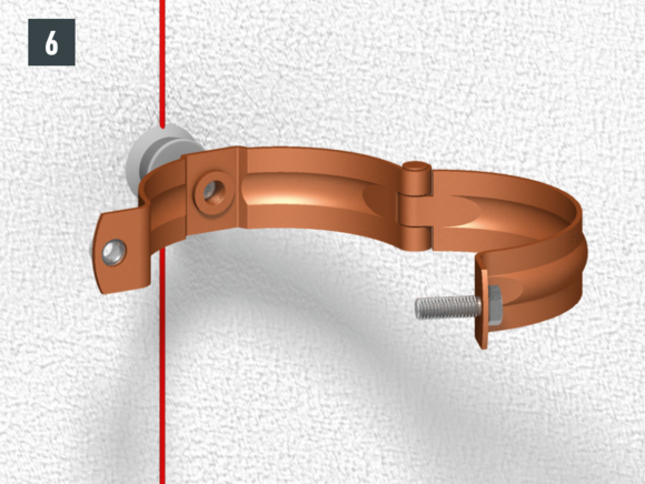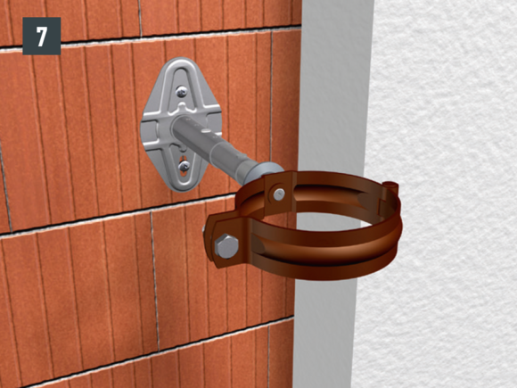 De afvoerbuis wordt met pijpbeugels gemonteerd. Afhankelijk van de ondergrond (geveloppervlak) moeten geschikte bevestigingsmiddelen voor de pijpbeugels worden gekozen.