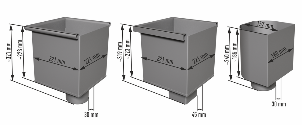 Vergaarbakken dienen met geschikte bevestigingsmiddelen aan de gevel te worden gemonteerd. De bevestigingsmiddelen moeten aan de betreffende ondergrond worden aangepast.