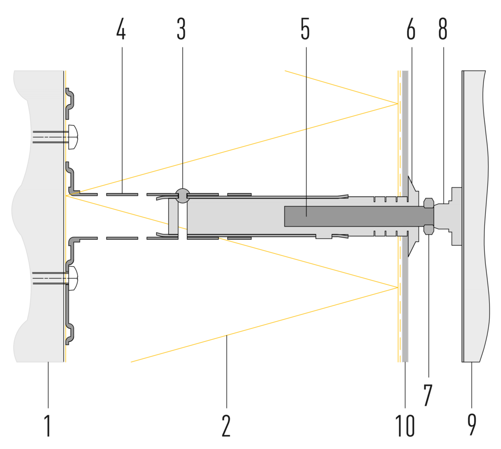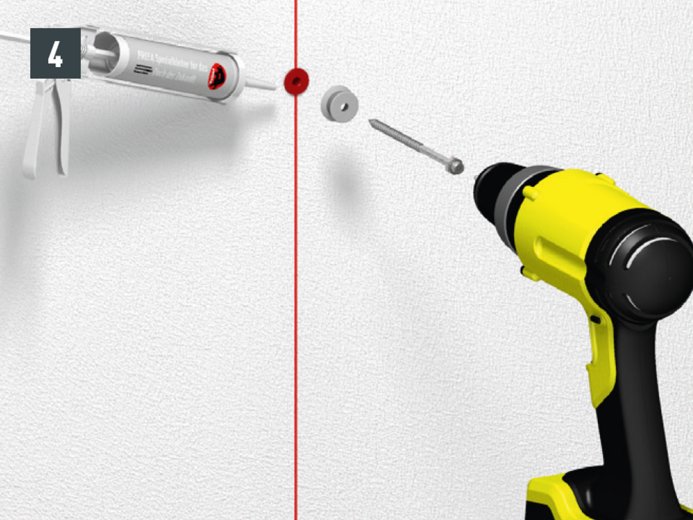 Voor gebruik bij bestaande WDVS-gevels (isolatiedikte van 50 – 200 mm mogelijk, verankeringsdiepte in het metselwerk min.: 70 mm).