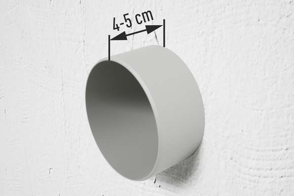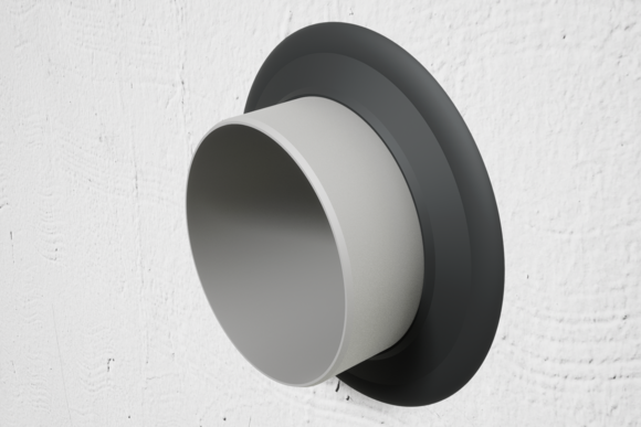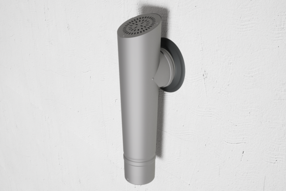 De afstand van de PREFA-afvoerbuis tot het geveloppervlak moet minimaal 20 mm zijn. Houd een afstand van minimaal 45 mm aan tussen de muur en de vierkante buis wanneer er een vierkante buis wordt gebruikt.