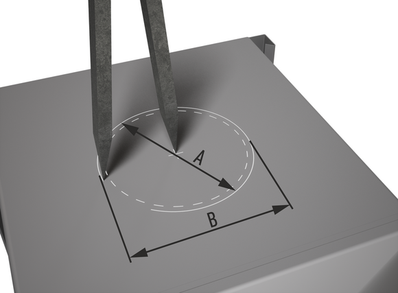 Buisdoorsnede inclusief speling voor de afdichting aan de achterzijde van de vergaarbak markeren en uitsnijden (afbeelding 1).