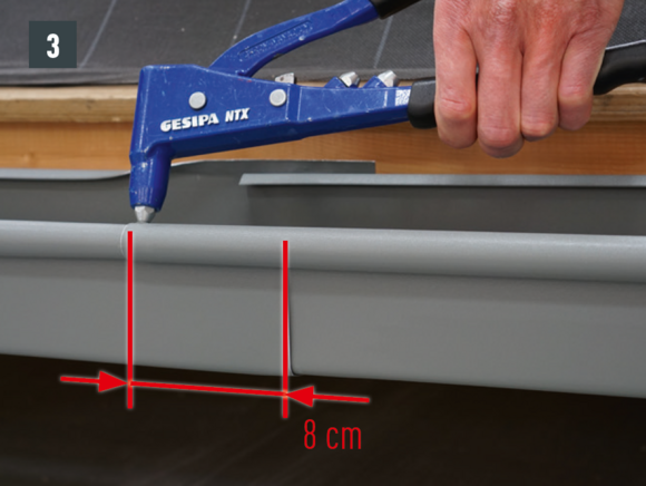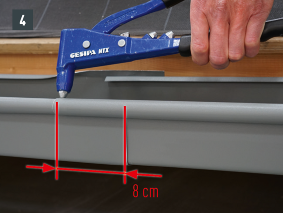De gootkraal niet aan beide zijden riveteren aangezien daardoor de mogelijkheid tot uitzetten wordt geblokkeerd.