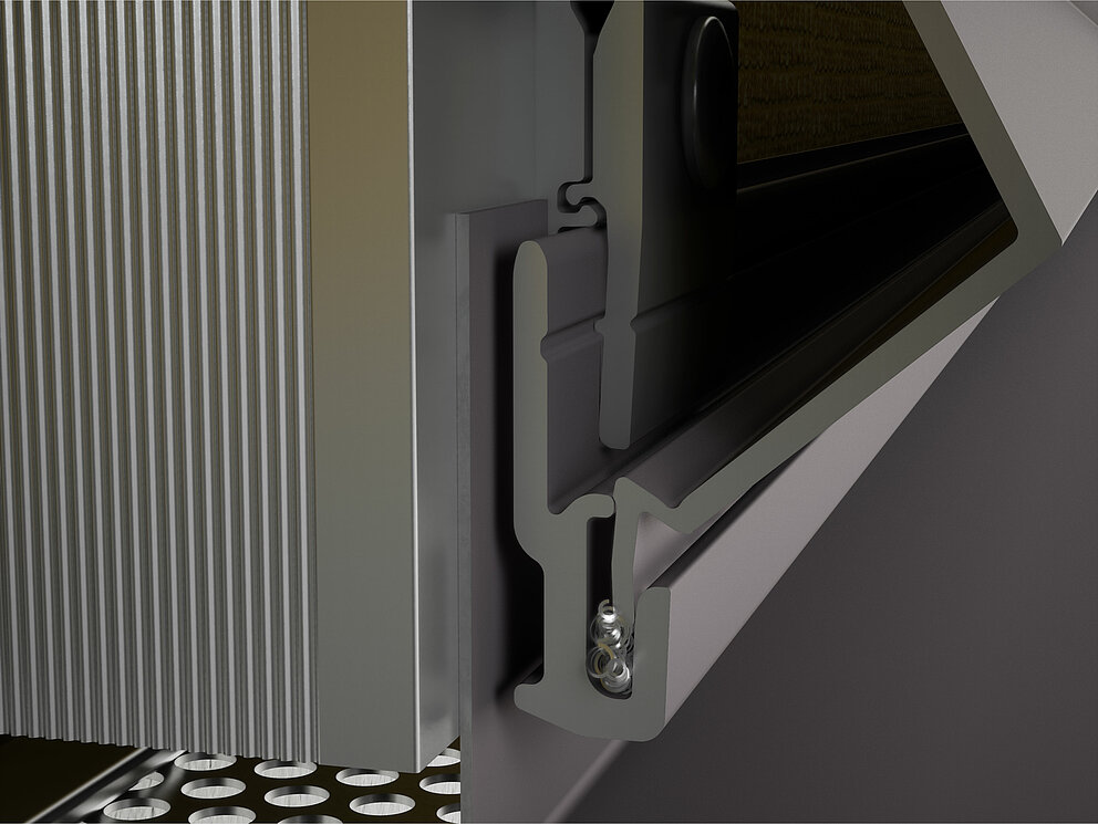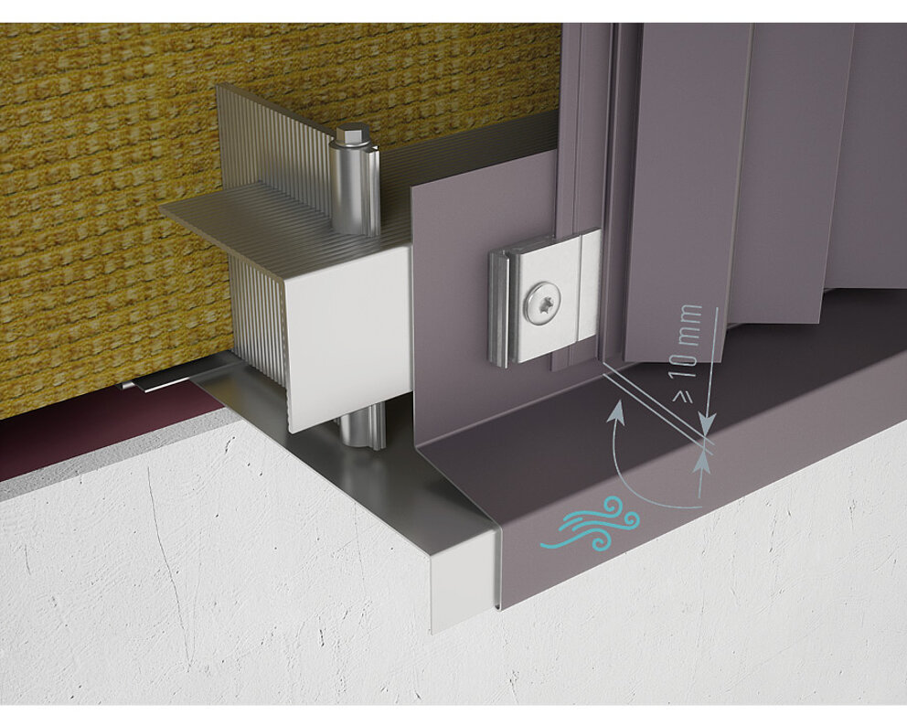 Om bij de geëxtrudeerde profielen voor voldoende toevoerlucht van de ventilatie aan de achterkant te zorgen, moet de afstand tussen de onderrand van het profiel en de druiplijst minimaal 10 mm bedragen.