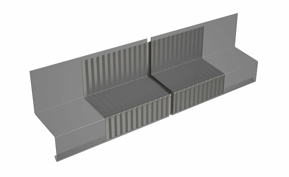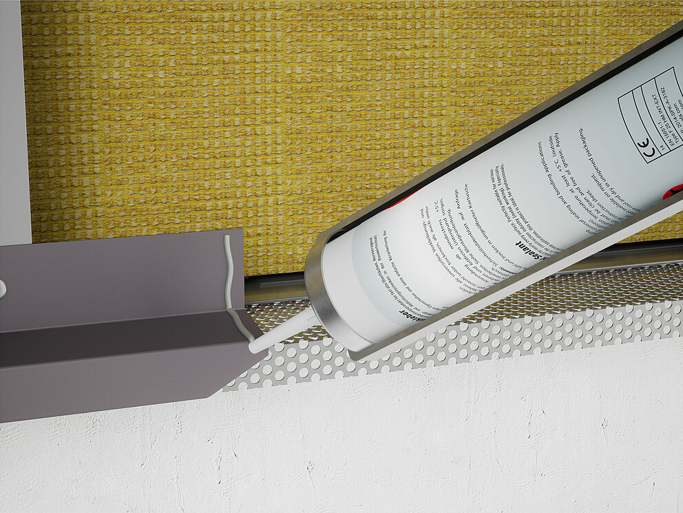 Bij grotere gebouwafmetingen mag u de startprofielen en het geperforeerde steekprofiel niet stoten vanwege de uitzetting van het materiaal. Houd een afstand van 5–10 mm aan voor het uitzetten van het materiaal (afhankelijk van de lengte van het startprofiel).