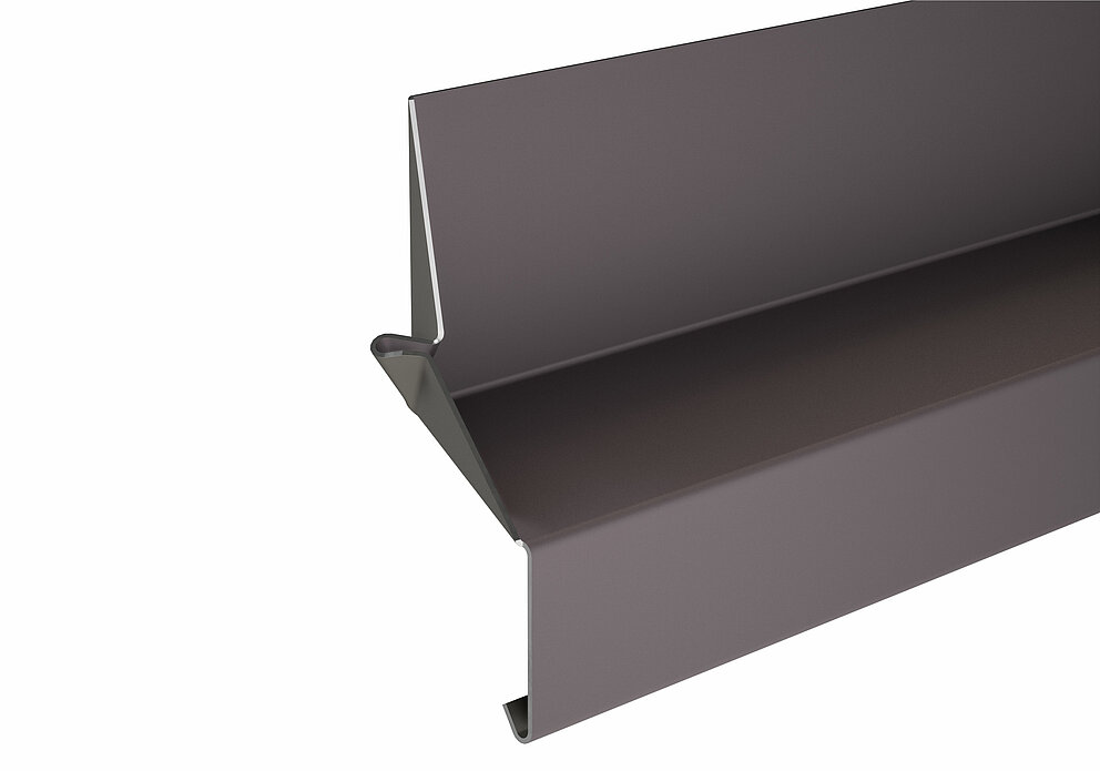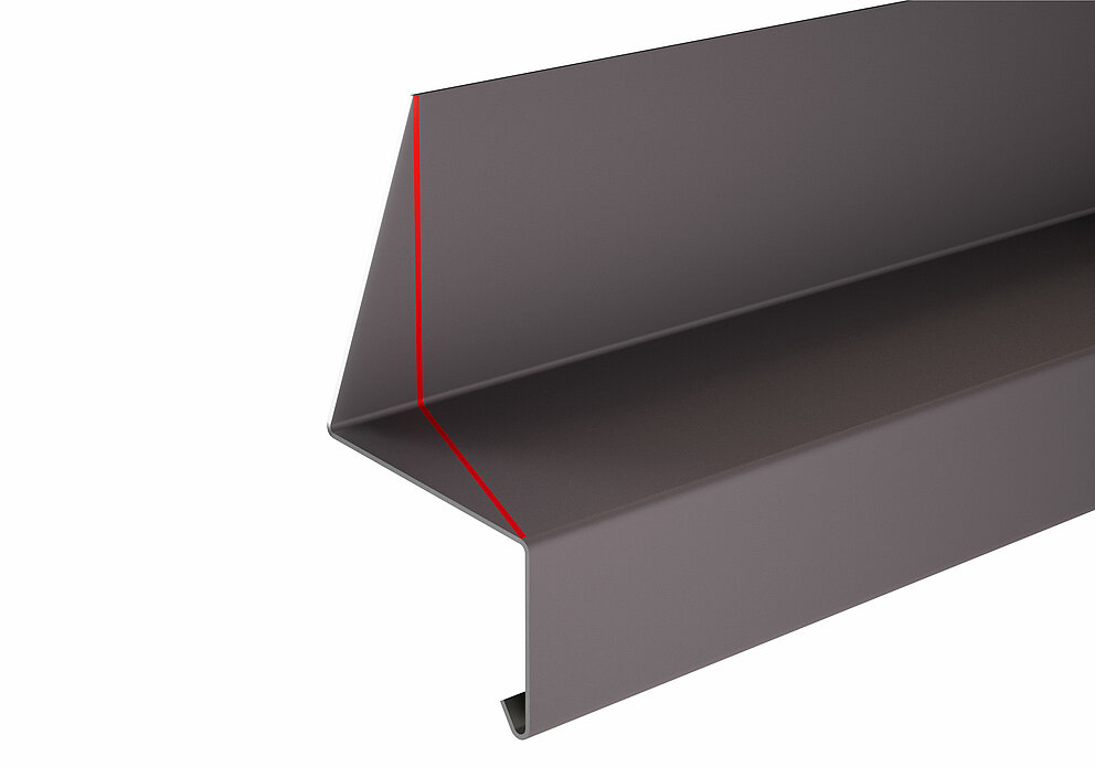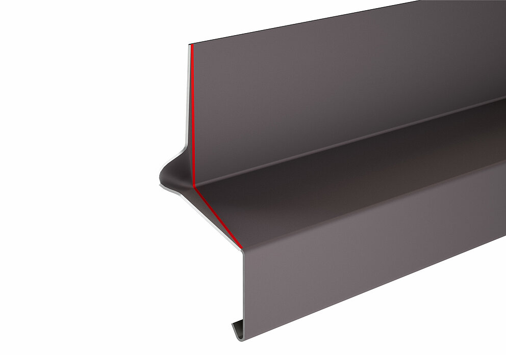 Aan de bovenzijde van de het dagkantprofiel wordt een vouw van 90° in de richting van het midden van het raam gemaakt.