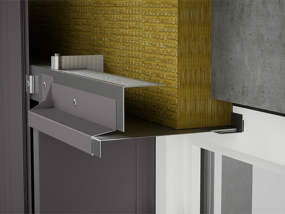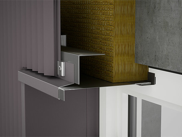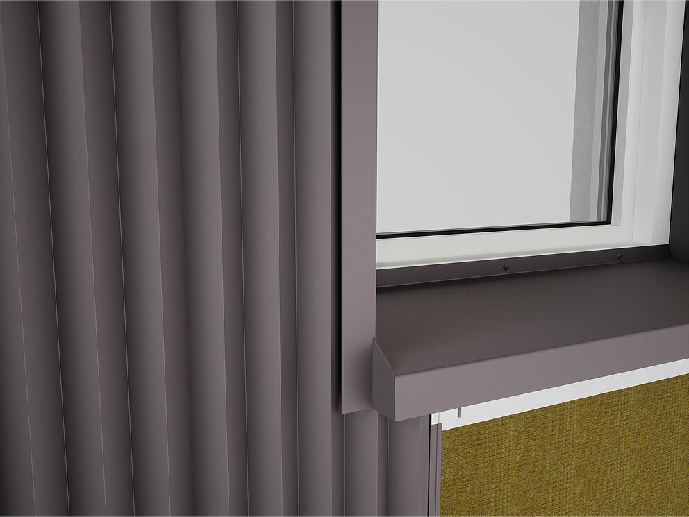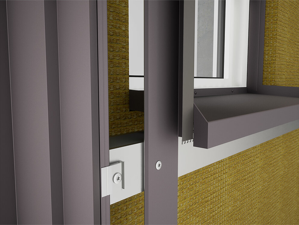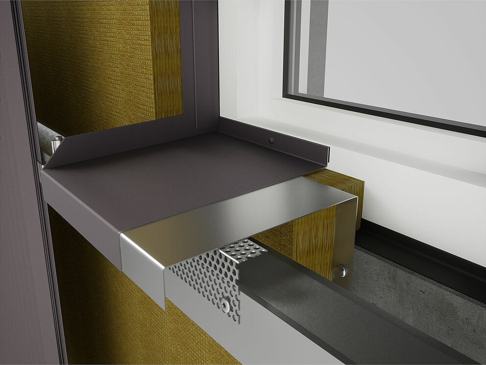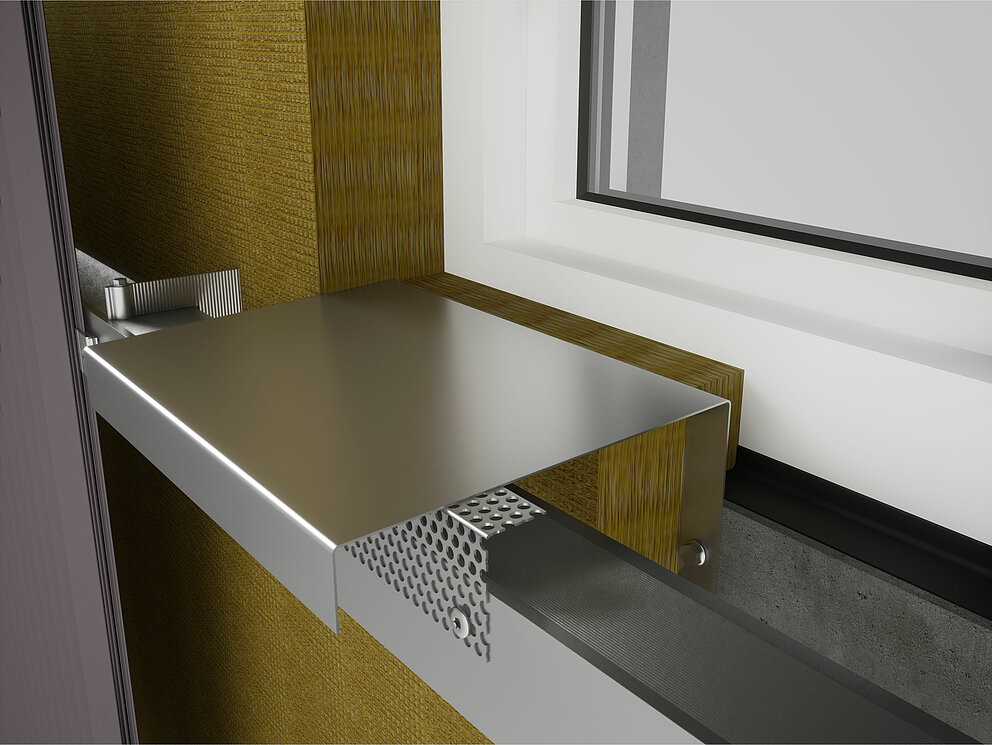 Vervolgens worden links en rechts van het raam de verbindingshoeken voor de dagkantplaat aan de onderconstructie geschroefd. Tegelijkertijd worden ook de steekprofielen voor de dagkantplaat en het steekprofiel voor de raamlatei aan het kozijn of metselwerk bevestigd.