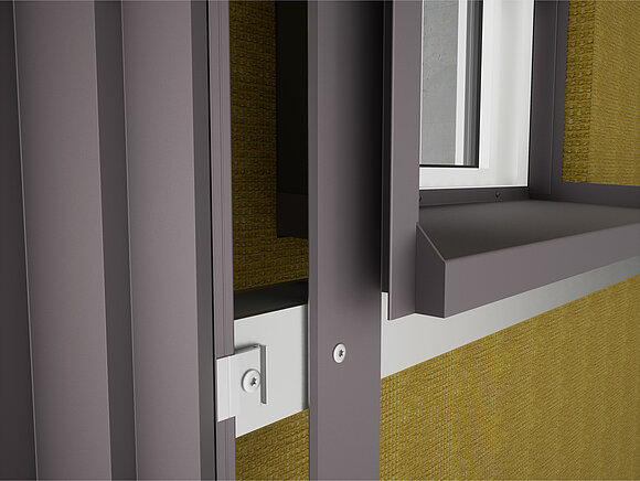 In de eerste stap van het raamkozijn worden het geperforeerde plaatwerk en de bevestigingsstrips gemonteerd. Zorg ervoor dat de ventilatie-opening aan de achterzijde niet wordt belemmerd.