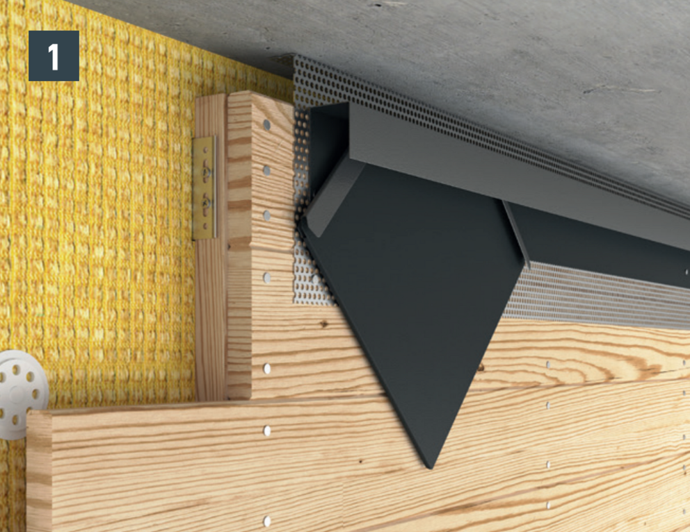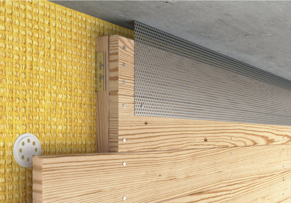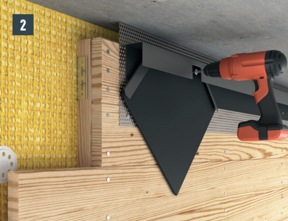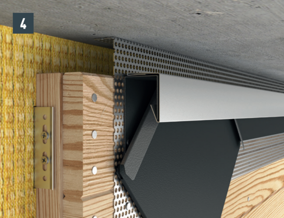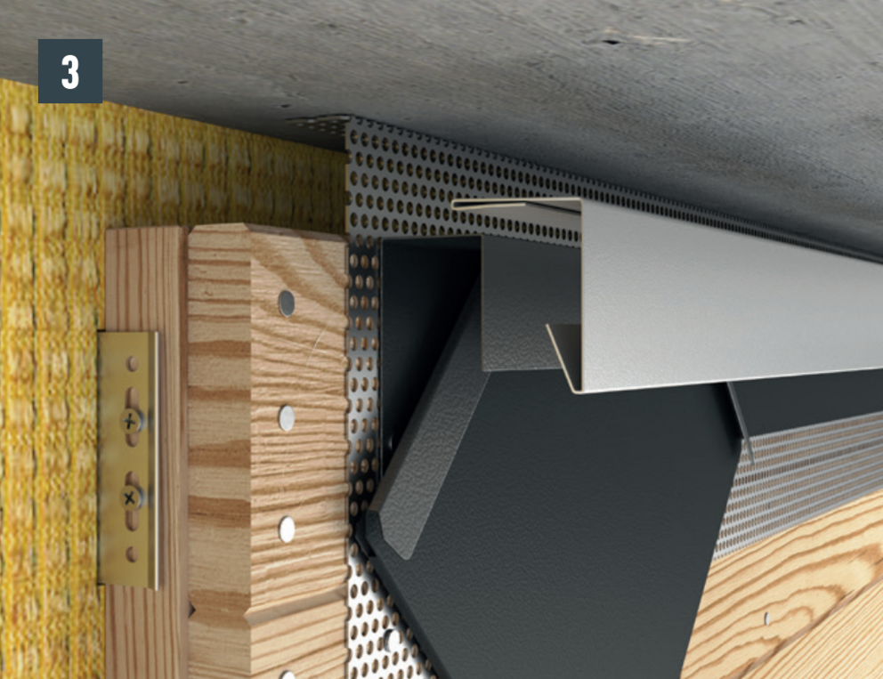 Om de gevel goed te ventileren dient er aan de bovenzijde een luchtafvoeropening te worden voorzien. Monteer een geperforeerde plaat met een vouw van 90° bij de luchtafvoeropening (bijv. onderzijde van het dak) om een grotere stijfheid tot stand te brengen.