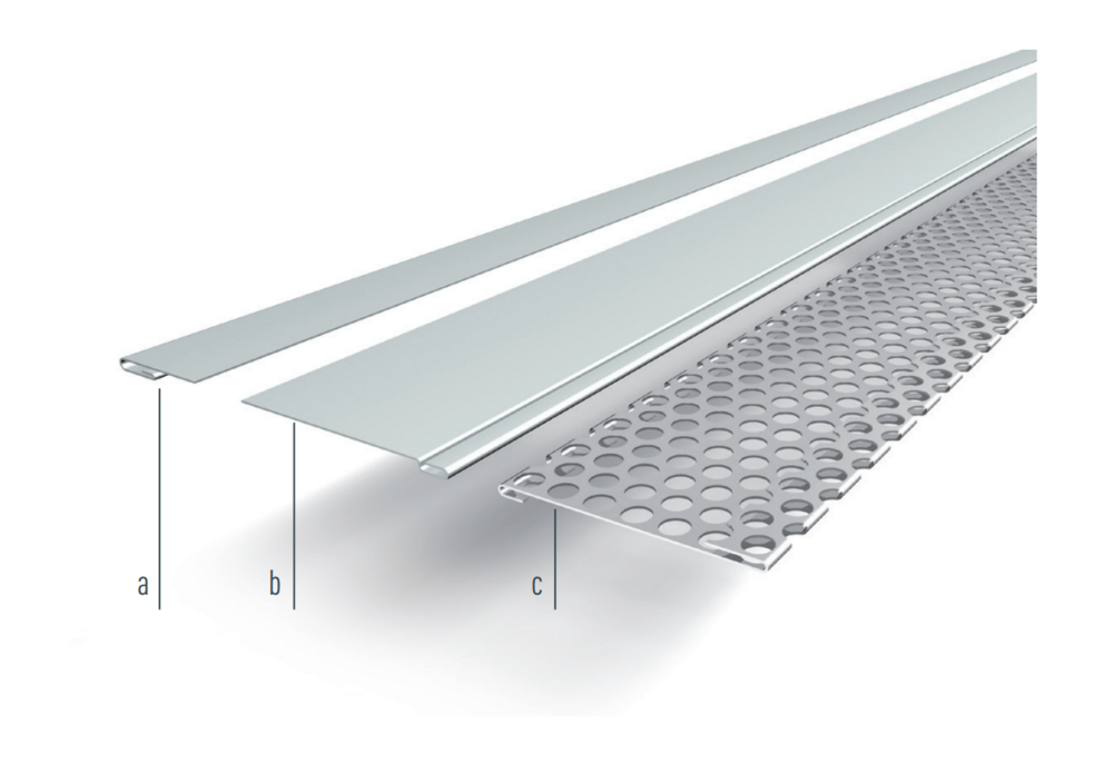 Voor de onderste aansluiting worden uit de PREFA aanvullend bandmateriaal resp. de PREFA geperforeerd bandmateriaal volgende profielen voorgeproduceerd: