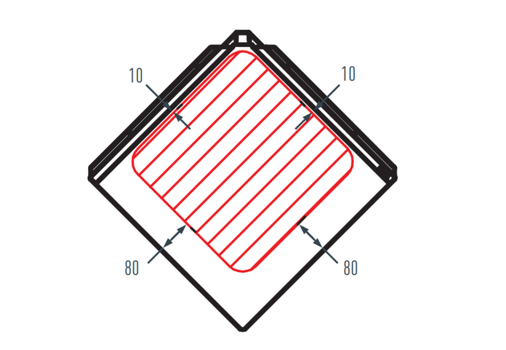 Indien u iets aan de gevel monteert (bijv. lampen), let dan bij de montage op het toegestane montagebereik van de gevellosange 44 × 44. Als het niet mogelijk is om het montagegebied aan te houden, moet een steunplaat worden aangebracht.