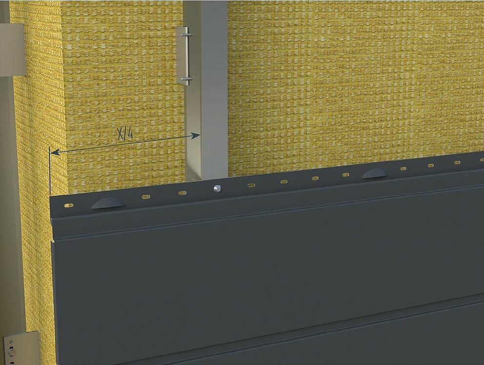 Neem de aanbevolen maximale uitkraging van Siding, Siding.X en Siding geperforeerd conform de statische eisen voor vrijdragende gebouwhoeken / in het randgebied van maximaal een kwart van de ondercontructieafstand in acht.