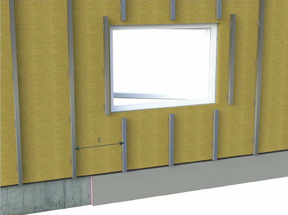 Voor zover uit de statische eisen, geldende normen en goedkeuringen, plaatselijke bouwvoorschriften of andere technische bepalingen geen kleinere afstanden voortvloeien, raadt PREFA aan om voor de onderconstructieafstand