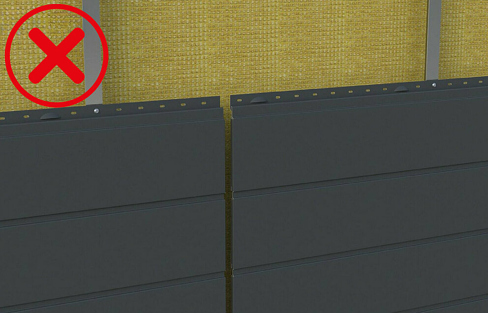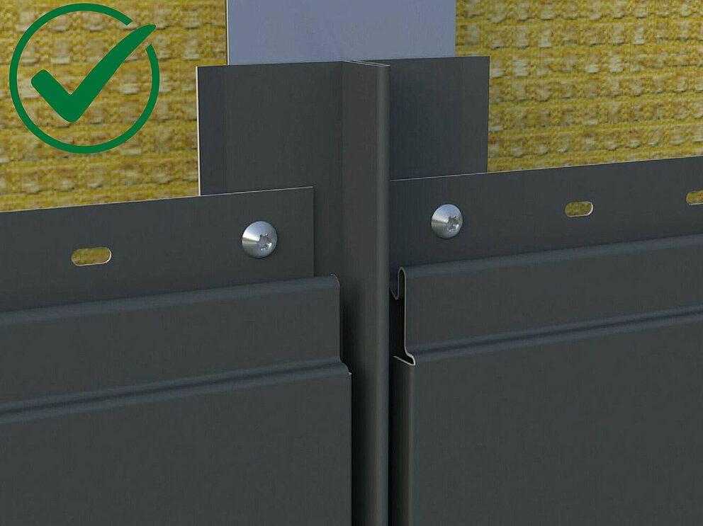 Let er bij installatie in een rechte lijn op dat de Siding eindigt bij een onderconstructiedraagprofiel zodat het voegprofiel kan worden gemonteerd.