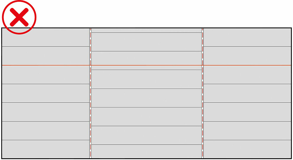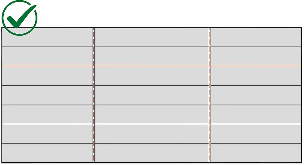 Let er vooral op dat na onderbrekingen, zoals bijv. bij stootvoegen, de lijn en uitlijning behouden blijven. Vanuit dit oogpunt verdient het aanbeveling om Siding, Siding.X en Siding geperforeerd regelmatig te controleren met smetlijnen.
