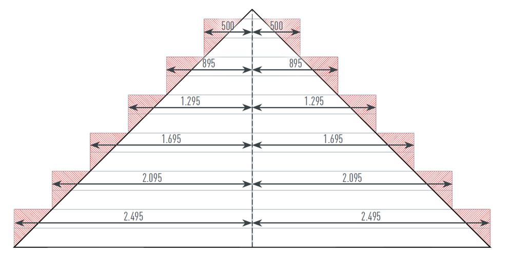 Bij driehoekige oppervlakken (bijv. gevelbekledingen) is de symmetrische uitlijning van de Siding belangrijk om een visueel aantrekkelijk uiterlijk te realiseren. Om deze reden is het raadzaam om vooraf te bepalen om ofwel een voeg in het midden van het gevelvlak te plaatsen of een bouwbreedte in het midden.
