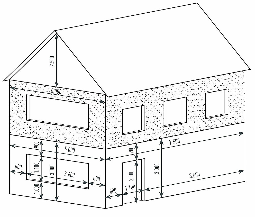 Onderbrekingen zoals bijv. raamopeningen < 1 m² kunnen worden verwaarloosd.