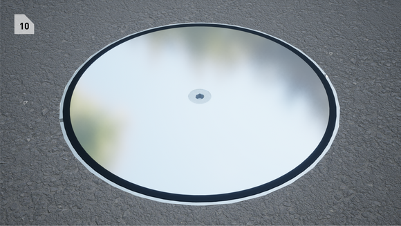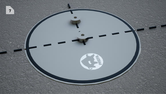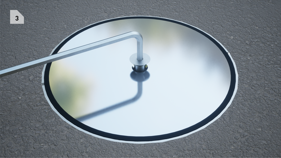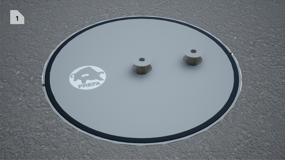 - Vergrendelbare deksel (2 schroeven) sluiten: Deksel met de 2 schroeven in een hoek van 90° ten opzichte van de markering in de bodemhuls plaatsen,
