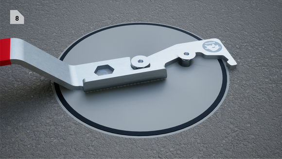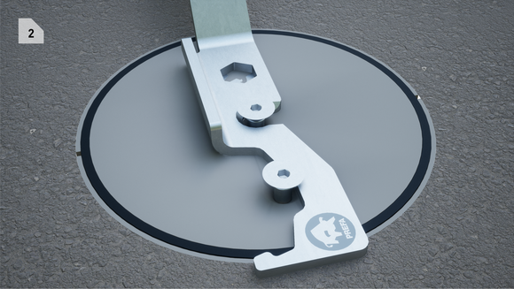 - Vergrendelbare deksel (2 schroeven) openen: Schroeven met inbus 6 mm ca. 1 cm uitdraaien, de middelste schroef verder draaien tot er geen weerstand meer voelbaar is, vervolgens de tilhulp plaatsen, 90° draaien en eruit tillen.