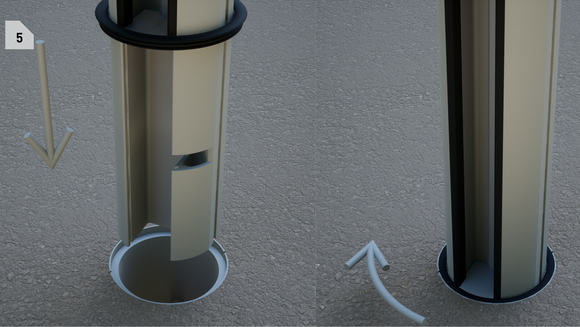 - Bij het draaien van de middenpilaar tot aan de aanslag op de exacte zit van de afdichting letten. Bij demontage in omgekeerde volgorde te werk gaan.