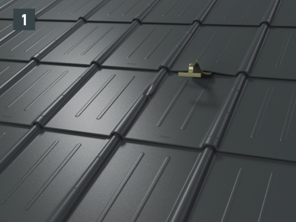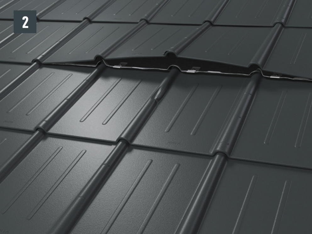 • Haal de dakpan met de hand uit de vouw door er krachtig aan te trekken (afbeelding 2).