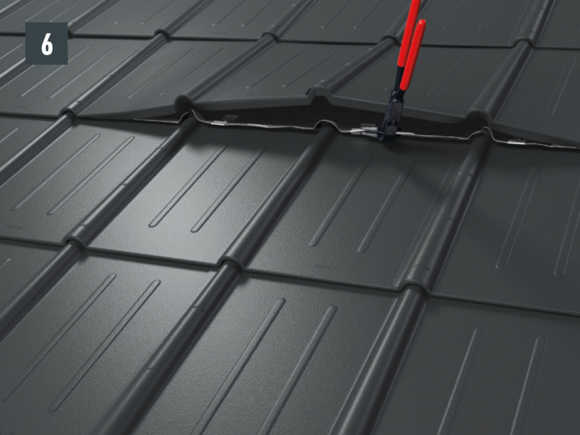 • Til de vouw op en klem beide klangen weer vast. Buig de vouw van de bovenste dakpan in een hoek van ongeveer 90° naar beneden (afbeelding 6).