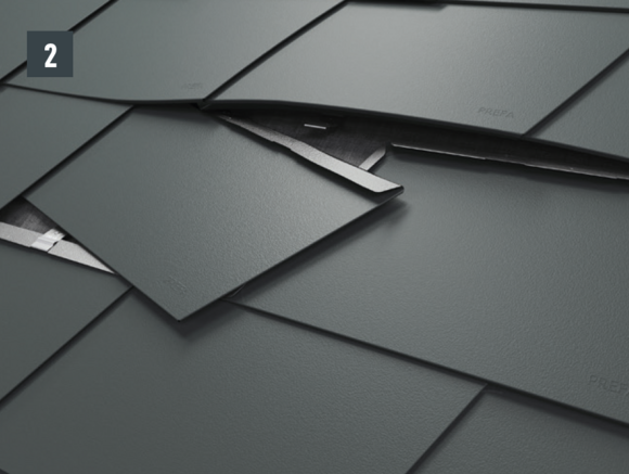 • Open het anker en verwijder de te vervangen dakschindel (afbeelding 2).