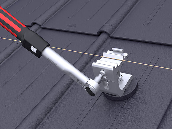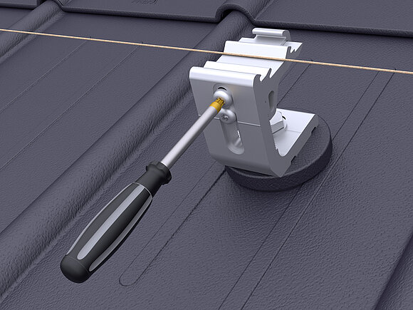 Stel de railhouders van de respectievelijk buitenste PREVARIO 3.S af op de middelste hoogte. Span een montagetouw en lijn de overige railhouders parallel aan het dak en in de hoogte uit. Draai de bovenste schroef van de reeds uitgelijnde railhouders vast met een draaimoment van 20 Nm.