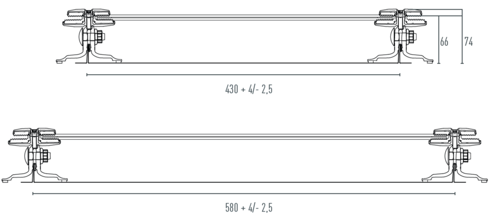 Houd er rekening mee dat dubbele onderfelspanelen omwille van het geringere felsverlies 10 mm ingekort moeten worden om een hart-op-hartmaat van 430/580 te verkrijgen! De montage op dubbele bovenfelspanelen is omwille van het grotere felsverlies van 10 mm niet mogelijk.