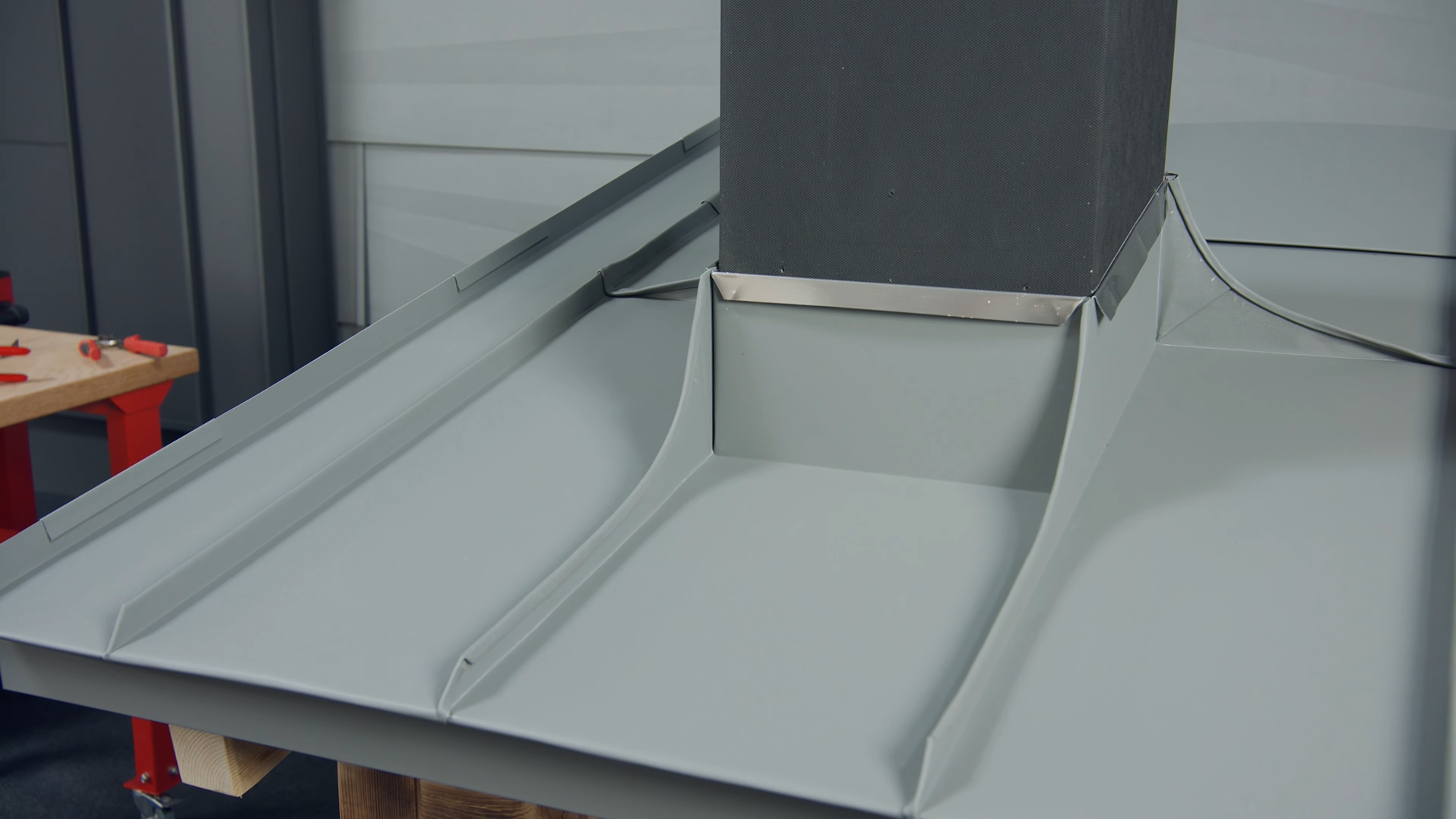 In diesem Video wird die Ausführung von der Kamineinfassung, Nackenblech Einbindung an die Eindeckung ≥ 10° - 25°DN gezeigt.